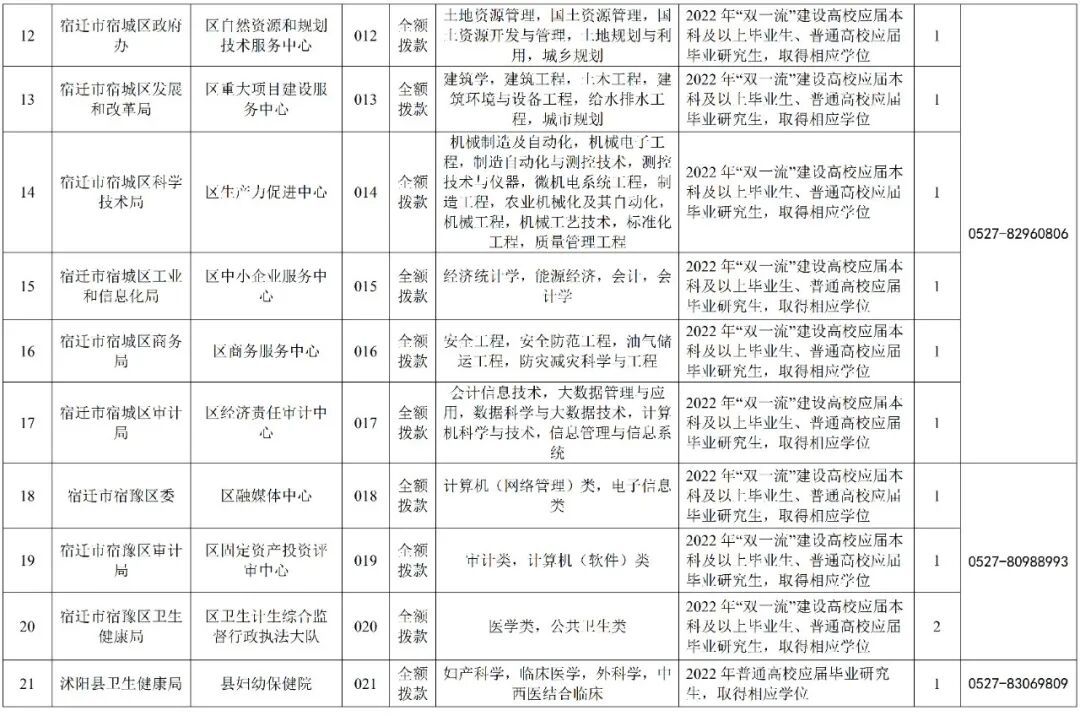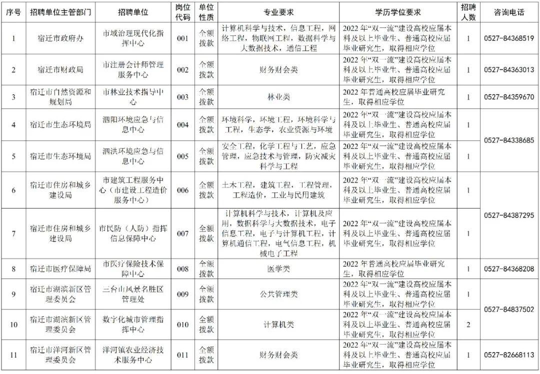 1.宿迁市2022年度选聘应届紧缺专业毕业生岗位简介表